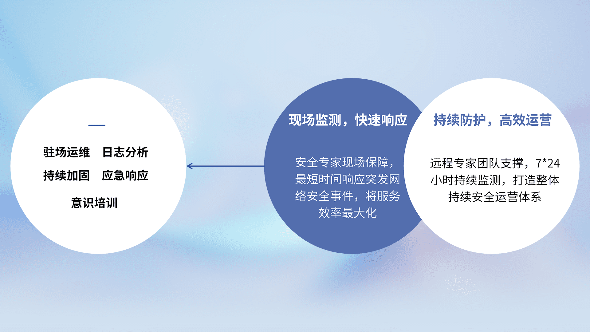 7X24小时持续监测安全事件,保持安全策略有效性,降低资产脆弱性风险,,,,精准拦截黑客攻击,,,,减少被黑客利用的机会,,,,第一时间遏制,,,,降低损失。。。。
