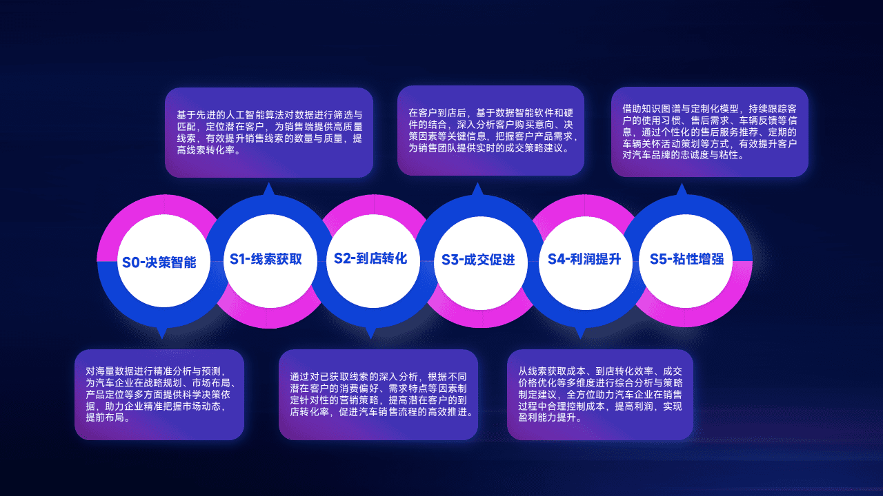 通过拓宽潜在客户来源、、、、优化线索分配并提高到店转化率,,以增强销售效率。。。。同时,,,,利用线索数据不断优化分析模型,,,有效提升转化率,,,扩大营销影响力。。。